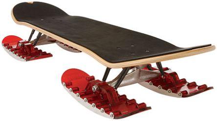 Here's something so useful and groundbreaking, we're surprised it's taken this long to hit the market. See, the Railz Conversion Kit, from Flowlab will allow your everyday, cement-loving skateboard… to carve the ski slopes! It's genius! No one's ever thought of taking the sport of skateboarding, and putting it on snow. Never been done. Genius, I tell you!