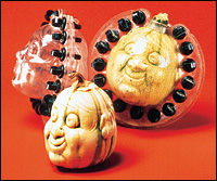 This is a great idea from Vegiforms - they are plastic molds that you attach around still-growing vegetables. As the gourd/ zucchini/ pumpkin/ eggplant/ melon/ squash/ cucumber grows, it takes the shape of the mold. If you were very handy, you could create your own mold (maybe out of clay or something?). But the rest of us are stuck with the few patters they have available. You’ve always wanted your cucumber to look like a little person, right?