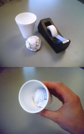 It’s a Friday. And whatsmore, a Friday before a long weekend. Time for some office antics in the form of football. Get yr’self 3 sheets of paper. Crumple. Tape inside a cup. Fairly instantly, you have a throwable object that looks like a love child of a Nerf football and a Shuttlecock (allright, teenagers… stop snickering). It’s Friday! It’s Mindless! It’s FUN-O-MATIC!