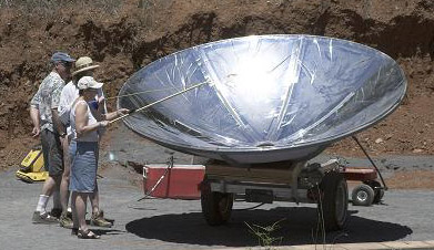 Hey! Here’s something that you don’t see every day but looks easy to build if you happen to have an extra satellite dish laying around and tons upon tons of foil! Hey! (huh?). Yes, that’s right. I don’t really have anything to say about this other than it is clearly the awesomest way to cook a hotdog. Horay Deathray Hotdog Cooking.