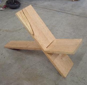 Here is a great little instructable on how to build this simple plank chair. Comments seem to imply that is sturdier than it looks (which was my first thought). The design is apparently centuries old. If you end up liking the chair, it wouldn’t take that much additional energy to make a whole set of these. Go crazy!