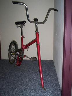 This was posted to Make yesterday: it’s a bike modified to ride on ice. Cool! (haha - very punny). Maybe I would have realized something like this existed sooner if I didn’t live in California. I can see how, in some isolated-by-the-long-winter garage, some intrepid DIYer started hacking a bike, and came up with this incredibly useful (to them) contraption. From looking at it, I would think this would be a very unstable ride. But then again, anything I do on ice is unstable, so maybe it’s just a matter of being raised in a land where it actually snows during the winter. If you like this contraption, take a look at this collection of more ice and snow bikes.