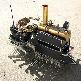 One of the coolest Artist/Engineer crossover people I’ve come across is Mr. Crabfu (not sure what his real name is…). He makes robots that run on steam power - many of them with incredibly sophisticated mechanical locomotion techniques - like the LocoCentipede shown here. He also has made other animal-like pieces, like spiders, trilobites, and turtles. Some of his other robots are simply tanks, or steam engines with feet that walk. He even has a small steam boat that rows itself. I highly recommend watching the videos of these guys in action. And, even though he is very modest throughout his site, referring to these ingenious contraptions as “silly”, Mr. Crabfu has (not surprisingly) won several awards for his creations, and has even been interviewed by NBC. Quite an array of robotical ingenuity, and definitely worth taking a look at.
