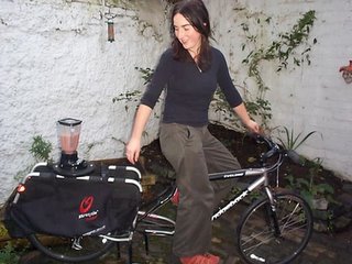 I’ve seen gas-powered blenders before (kind of like inverted lawnmowers), but I was never to partial to the idea of exhaust and gasoline next to my margarita. I guess I’m more of a bike blender guy, then. The Byerley Bicycle Blender is “the world’s finest bicycle-driven human powered blender”. From the looks of it, bicycle blending does look pretty fun. I could see it getting some heavy use during bike-camping trips, or just regular ol’ picnicks. It’s too bad that the sets they sell exceed $700 [do a double-take here]. Not including the bike, you need the blender head unit itself, plus an extracycle (the bike trailer), and the stand to put under your back wheel such that you don’t go anywhere while blending. If I had more time, and more picnicks to attend, I would Do This Myself. It would be much more ghetto, but it definitely wouldn’t cost $700. Oh well. It’s probably better, because I would just end up using this for margaritas. I can see a bunch of inebriated people standing around a bike blender now: “Go faster, Joe! Puree! Puree! Right now you’re only Chopping!”