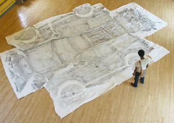Chris took a Ford Explorer, covered it with paper, and did a rubbing of the whole car with graphite. Pretty cool, huh? This just goes to show something I have always known about doing art. If you are having a hard time coming up with something interesting, pick something that has already been done (rubbing with graphite), and dramatically increase/decrease the normal scale (in this case, SUV sized rubbing). Despite the fact that there seems to be no real message in this artwork, it is just-plain-cool to look at. Snooty art people be damned: I like giant rubbings.
