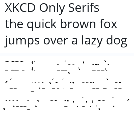 After seeing the above comic, I was struck with a sense of duty to make this idea real. For better or for worse, I present to you a fully functional font that only includes the serifs of the letters.